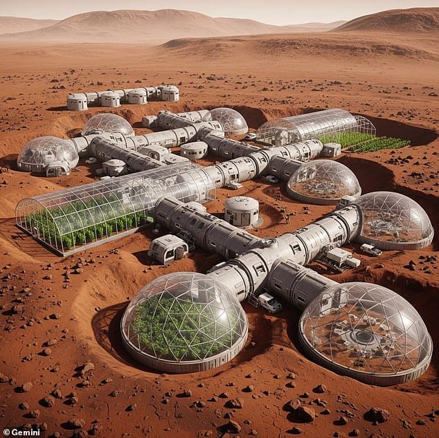 - Humans inhabit large orbital habitats and Martian bases